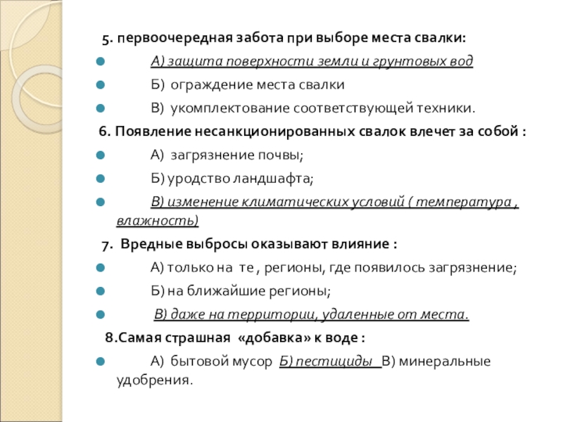 Слайд 20 5. первоочередная забота при выборе места свалки: