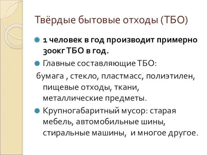 Слайд 6Твёрдые бытовые отходы (ТБО)