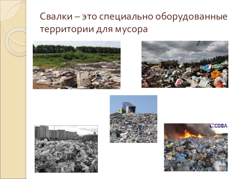 Слайд 8Свалки – это специально оборудованные территории для мусора