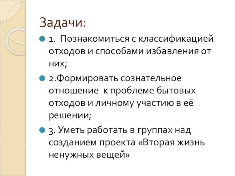 3. Уметь работать в группах над созданием проекта «Вторая жизнь ненужных вещей»