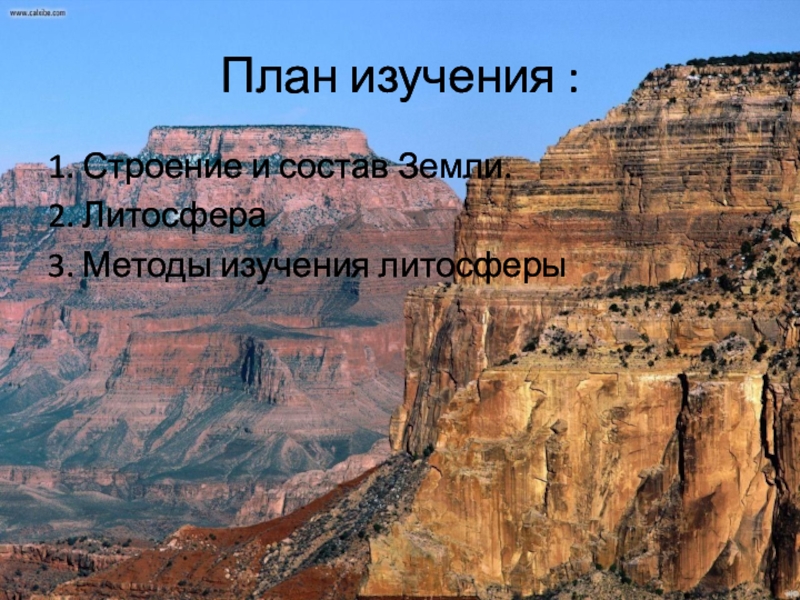 План изучения :1. Строение и состав Земли.2. Литосфера3. Методы изучения литосферы