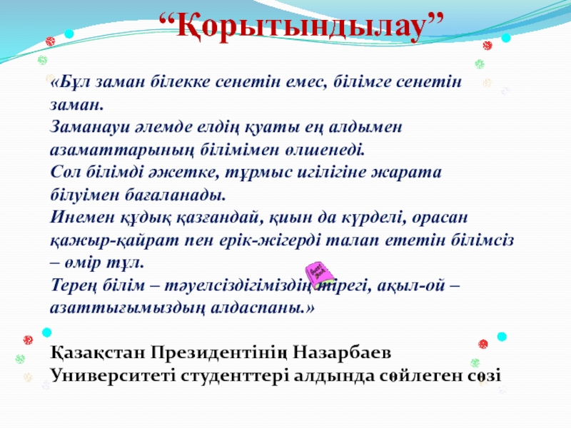 Слайд 3Ұлт тірегі- білімді ұрпақ қолында,