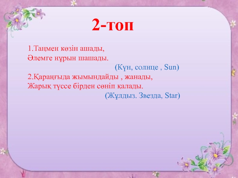 Жұмбақтар жасырылынады жауаптарын қазақша , орысша , ағылшынша айтуларыңыз керек