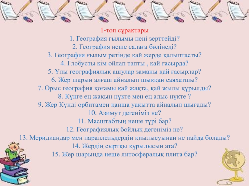 1. (Грек тілінен гео –жер , графо –жазу) жер шарының табиғат