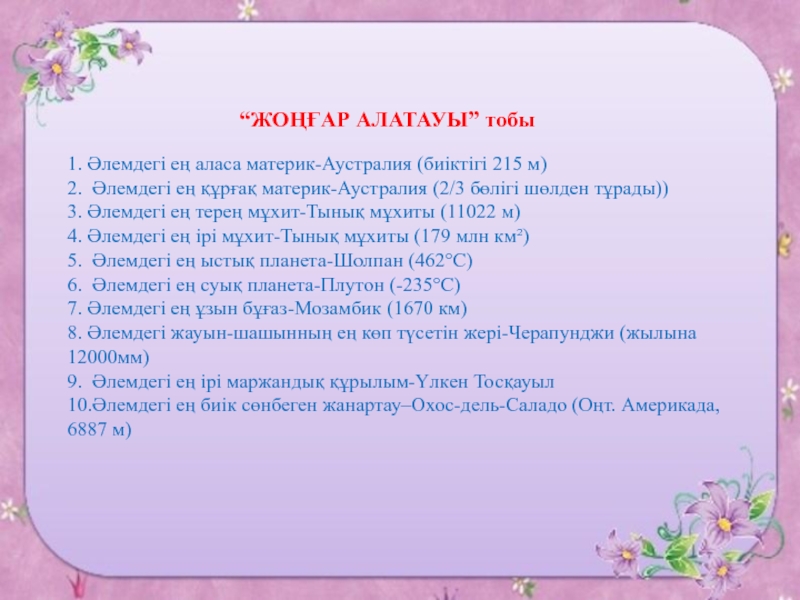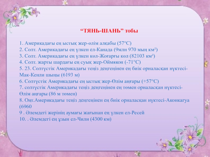 4. Солт. жарты шардағы ең суық жер-Оймякон (-71°С)