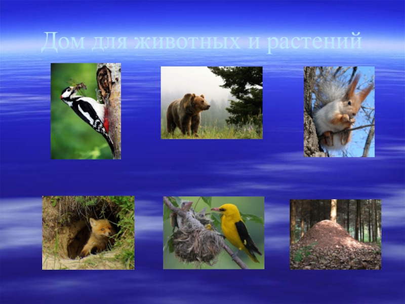 ЗНАЧЕНИЕ ЛЕСА  Дом для животных, растений, грибов.   Защитник водоёмов, воздуха, почвы.   Место