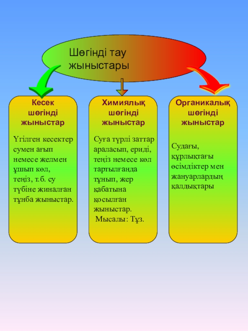 1. Темірлі, тасты (кремний мен оттегі басым).2. Темірлі тасты.