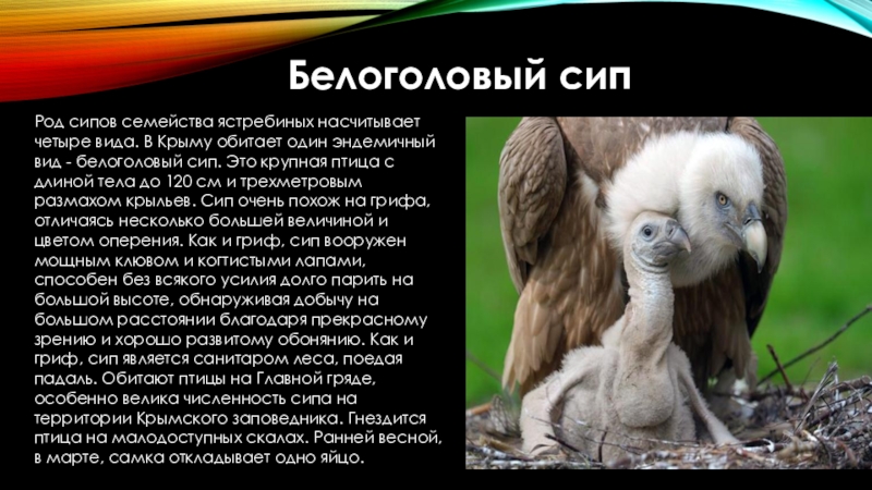 Род сипов семейства ястребиных насчитывает четыре вида. В Крыму обитает