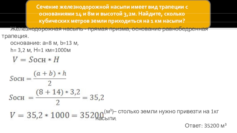 (м3) – столько земли нужно привезти на 1кг насыпи;