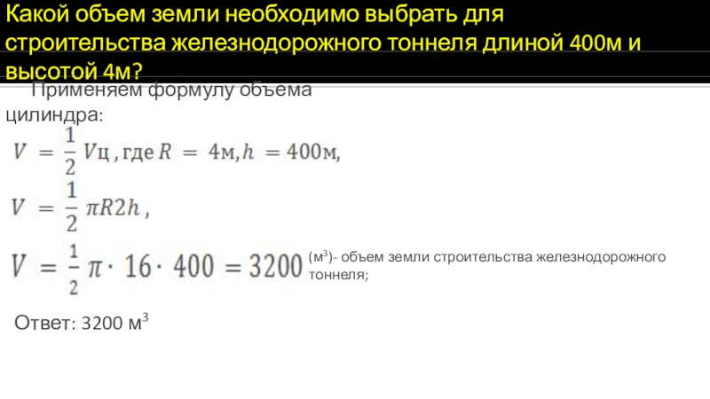 (м3)- объем земли строительства железнодорожного тоннеля;