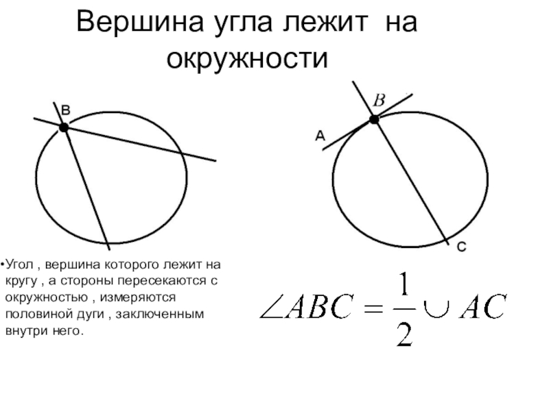 угол АВС ,. Стороны АВ- касательная ,ВС – секущая