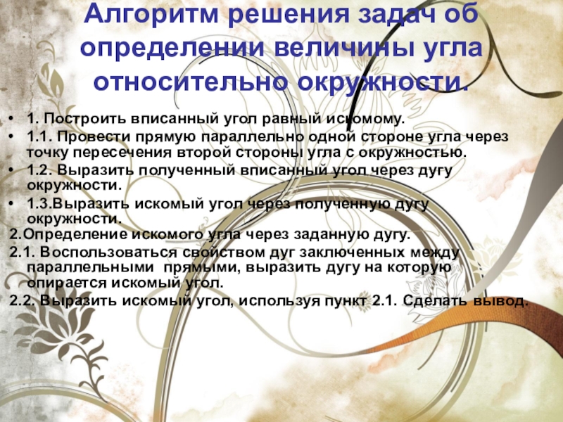 2.Определение искомого угла через заданную дугу.