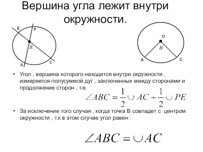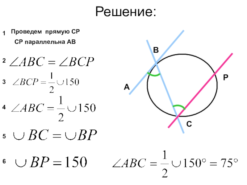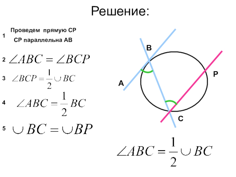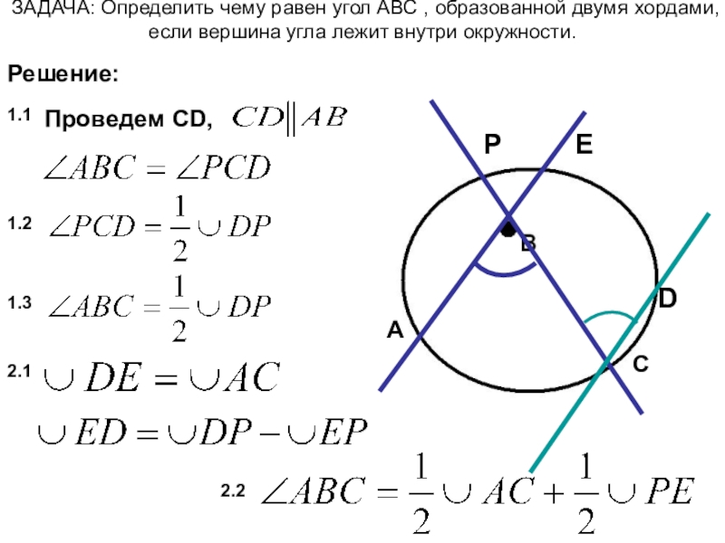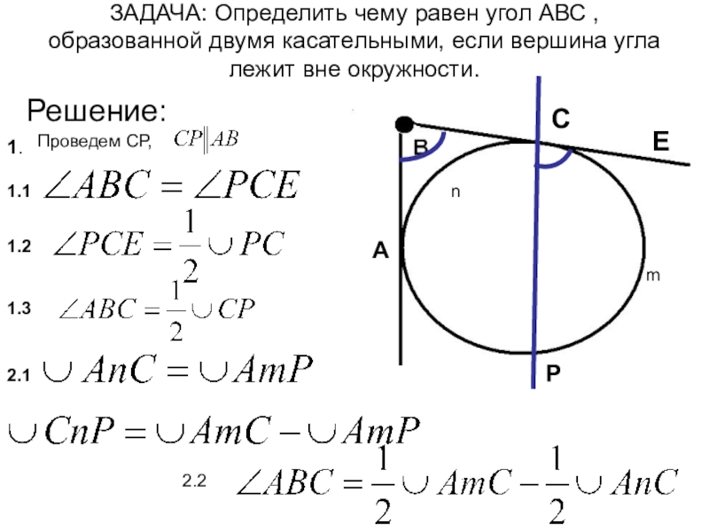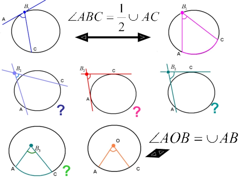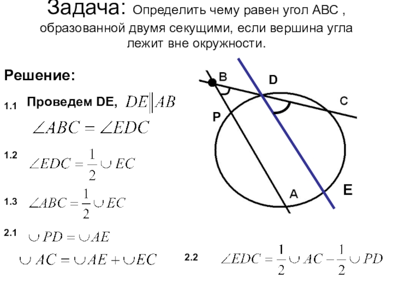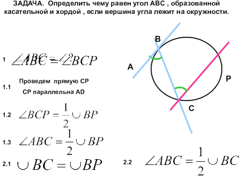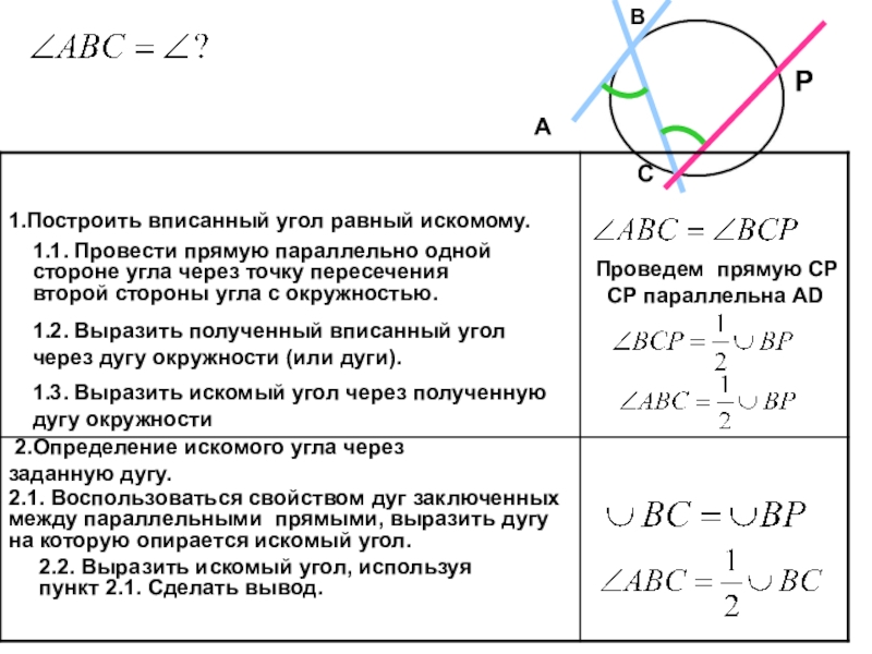 1.2. Выразить полученный вписанный угол через дугу окружности (или дуги).