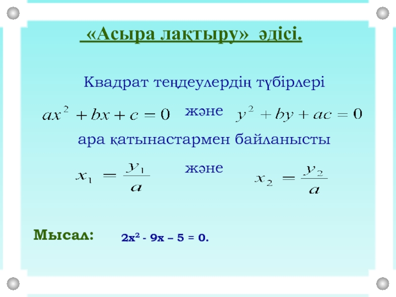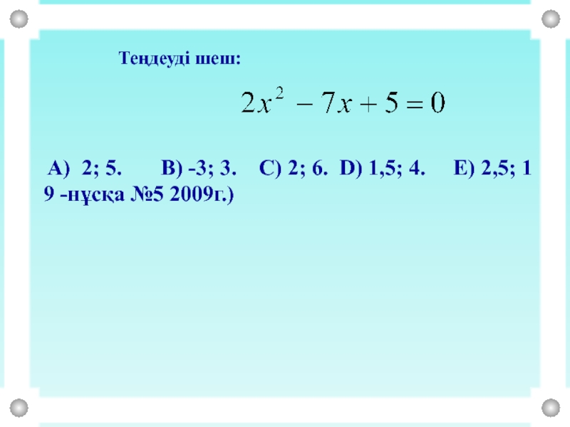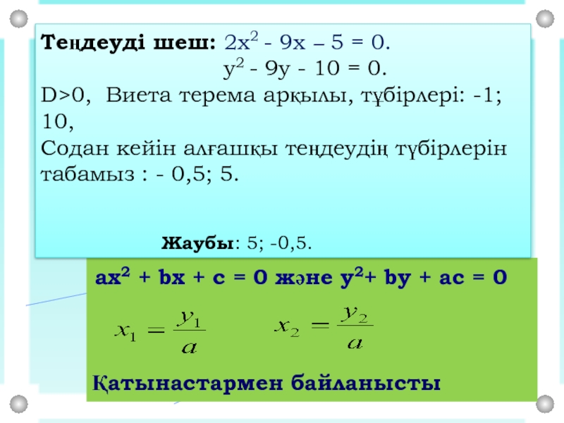 Теңдеуді шеш: 2х2 - 9х – 5 = 0.