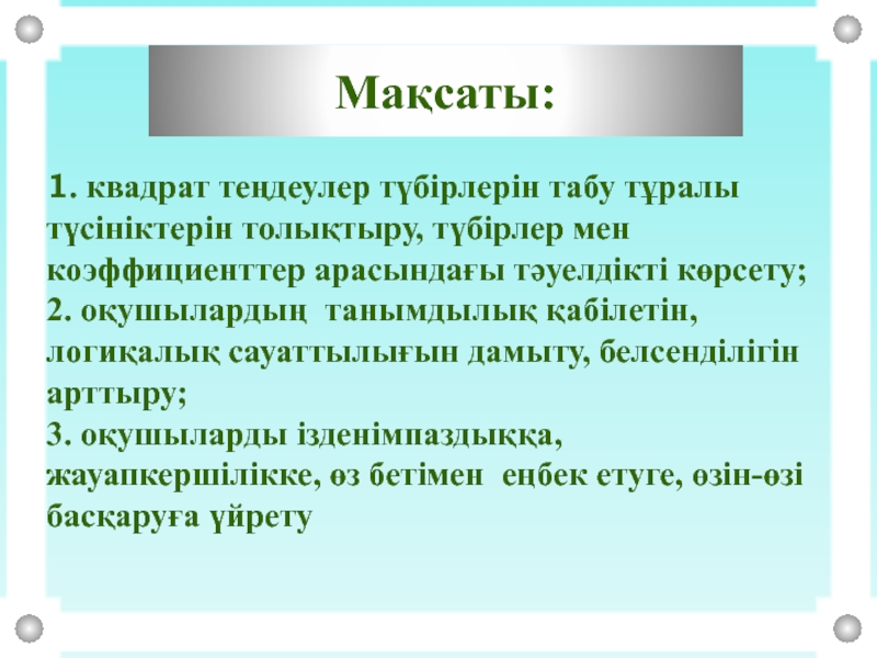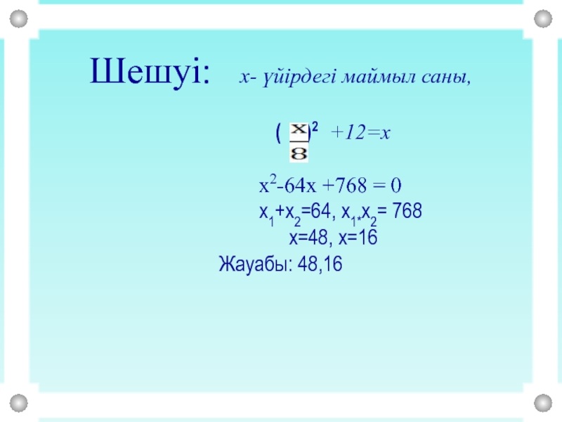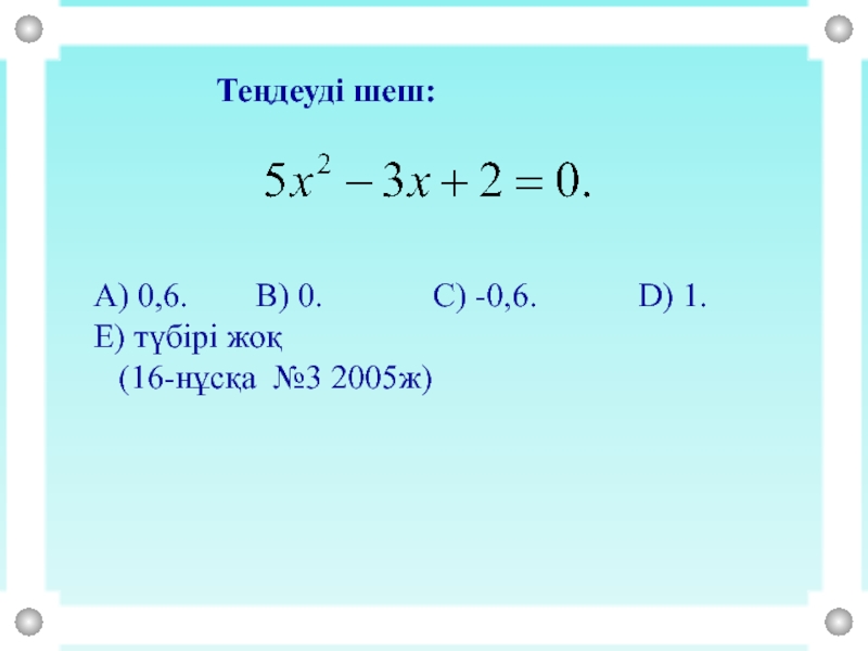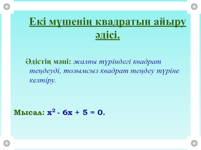 Теңдеудің шешуі: х2 - 6х + 5 = 0.