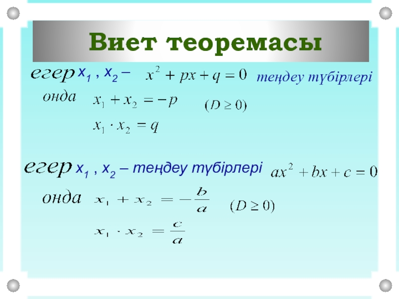 D>0, Виета терема арқылы, тұбірлері: -1; 10,