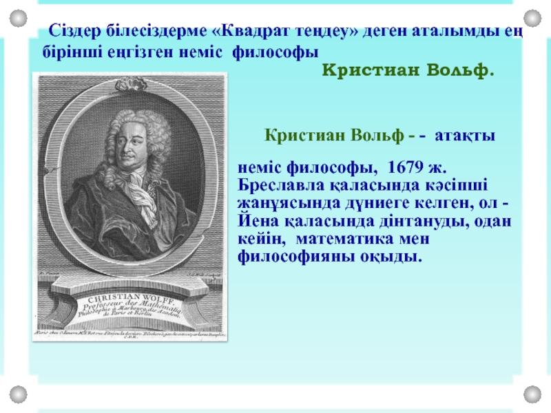 Сіздер білесіздерме «Квадрат теңдеу» деген аталымды ең бірінші еңгізген неміс философы