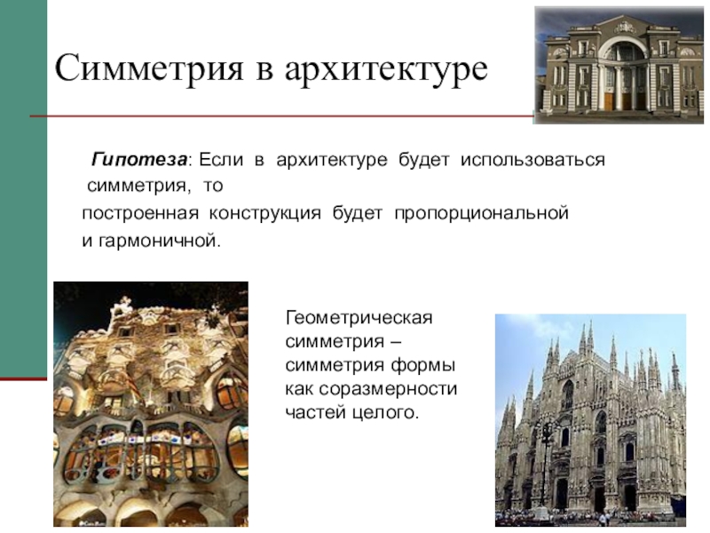 Гипотеза: Если в архитектуре будет использоваться симметрия,