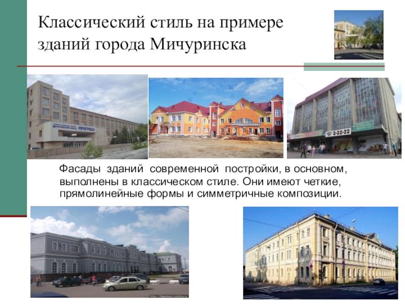 Слайд 11Классический стиль на примере зданий города Мичуринска