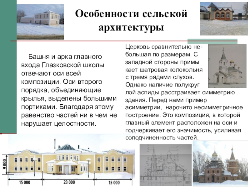 Слайд 14Особенности сельской архитектуры
