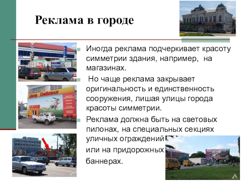 Но чаще реклама закрывает оригинальность и единственность сооружения, лишая улицы города красоты симметрии.