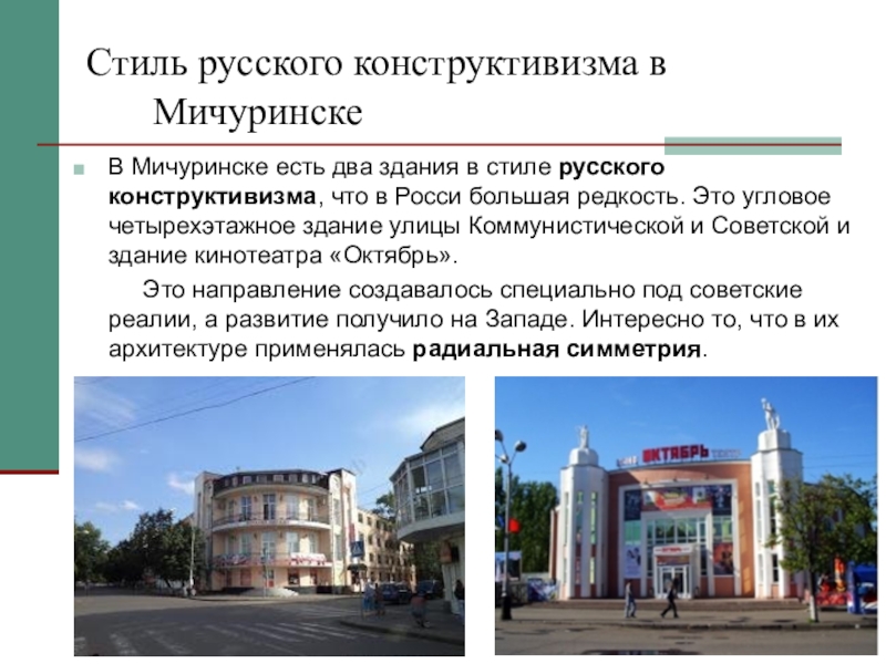 Слайд 7 Стиль русского конструктивизма в Мичуринске