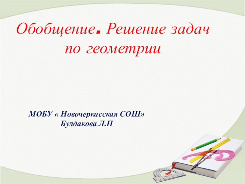 Обобщение. Решение задач по геометрии МОБУ « Новочеркасская СОШ»Булдакова Л.П