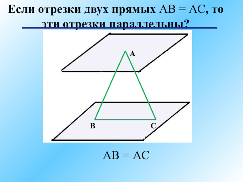 АВСAB = АCЕсли отрезки двух прямых AB = АC, то эти отрезки параллельны?
