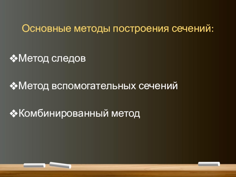 Основные методы построения сечений:Метод следовМетод вспомогательных сеченийКомбинированный метод