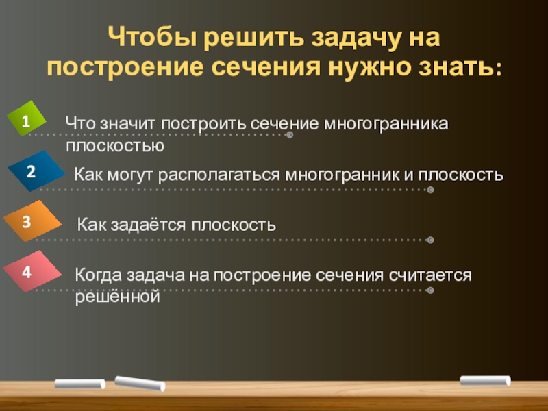 Слайд 2Чтобы решить задачу на построение сечения нужно знать: