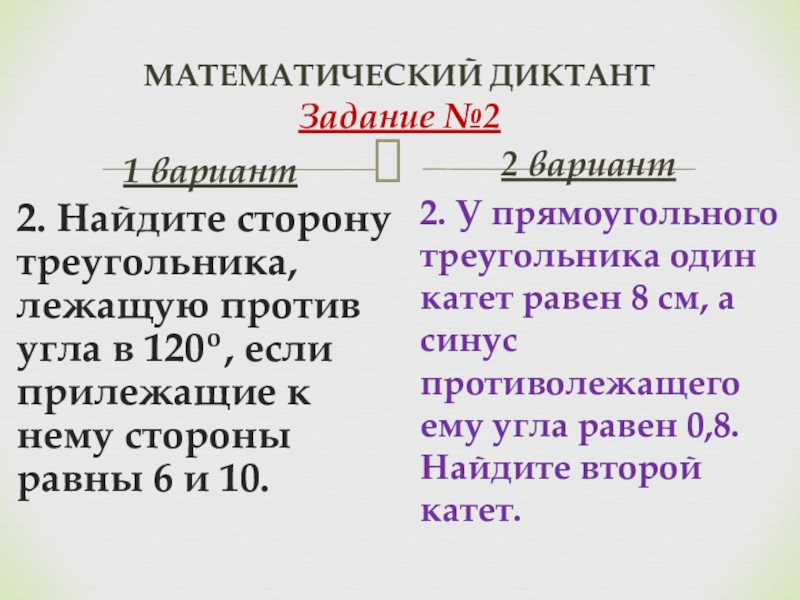 2. У прямоугольного треугольника один катет равен 8 см, а синус противолежащего ему угла равен 0,8. Найдите второй катет.