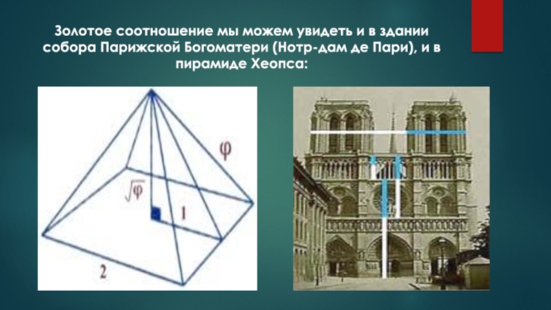 Золотое соотношение мы можем увидеть и в здании собора Парижской Богоматери (Нотр-дам де Пари), и в пирамиде
