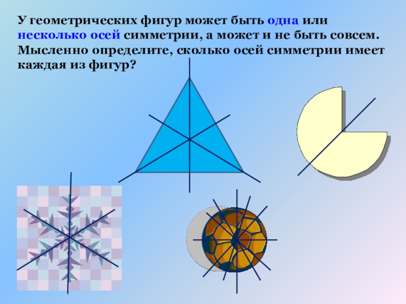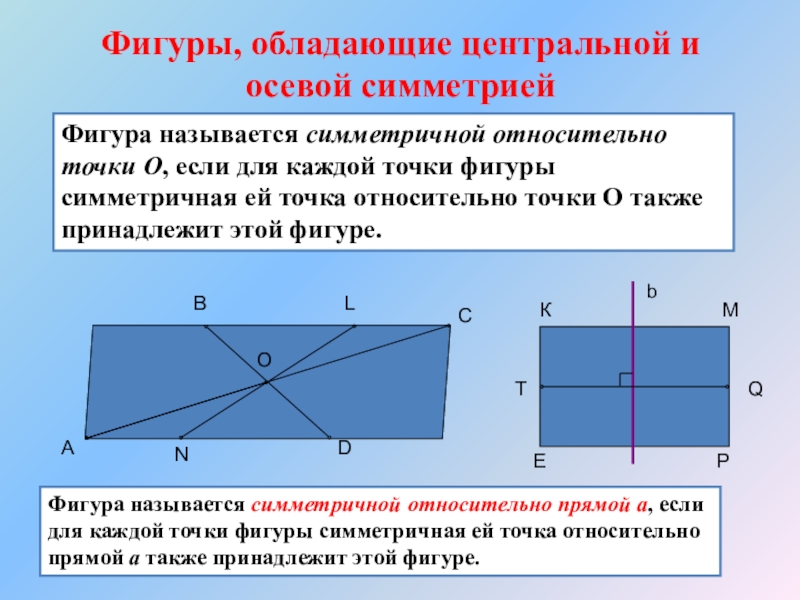 Фигура называется симметричной относительно прямой а, если для каждой точки фигуры симметричная ей точка относительно прямой а также принадлежит этой фигуре.