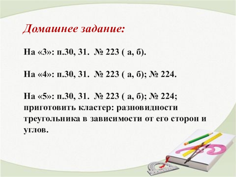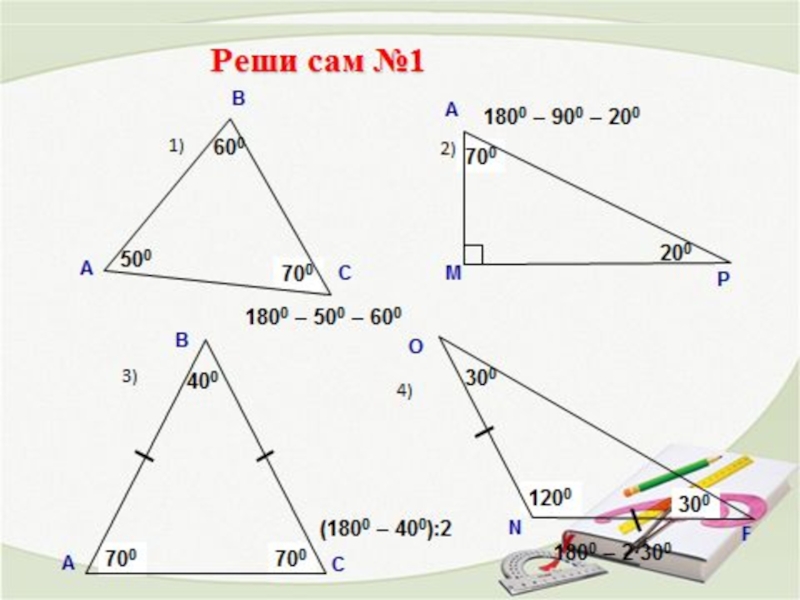 10 ̊, 60 ̊, 90 ̊; 2) 30 ̊, 60 ̊, 90 ̊;