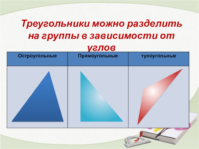 1 острый угол, 1 прямой угол, 1 тупой угол;