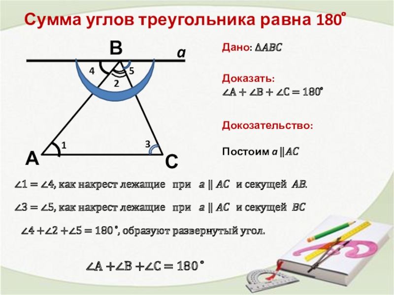 ∠4 +∠2 +∠5 = 180 ̊, образуют развернутый угол.
