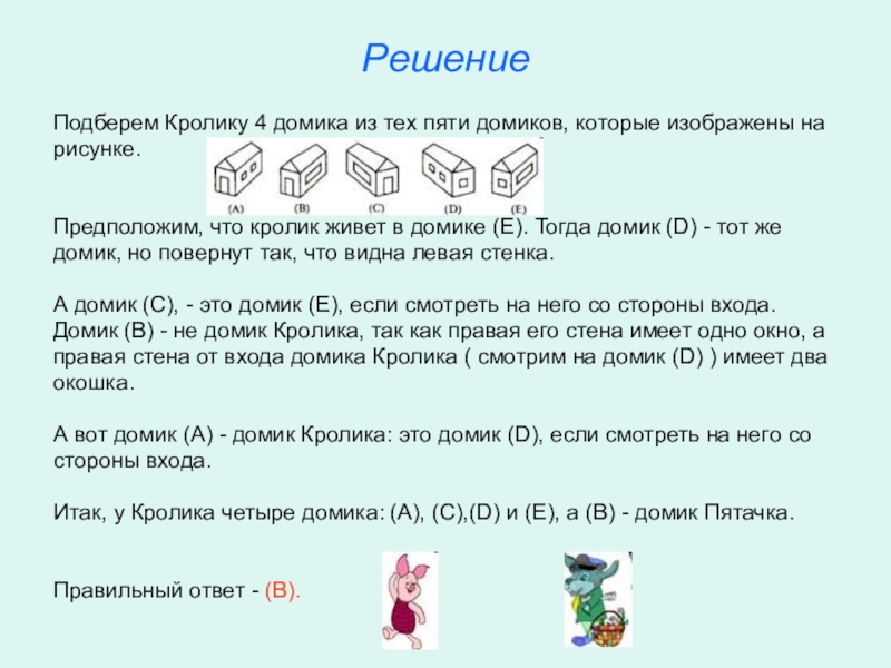 Итак, у Кролика четыре домика: (А), (С),(D) и (Е), а (В) - домик Пятачка.