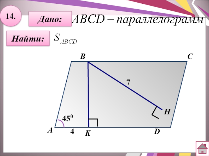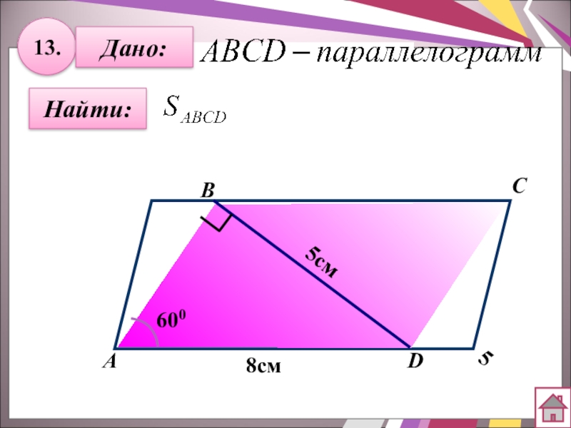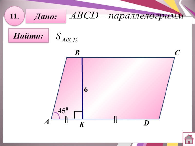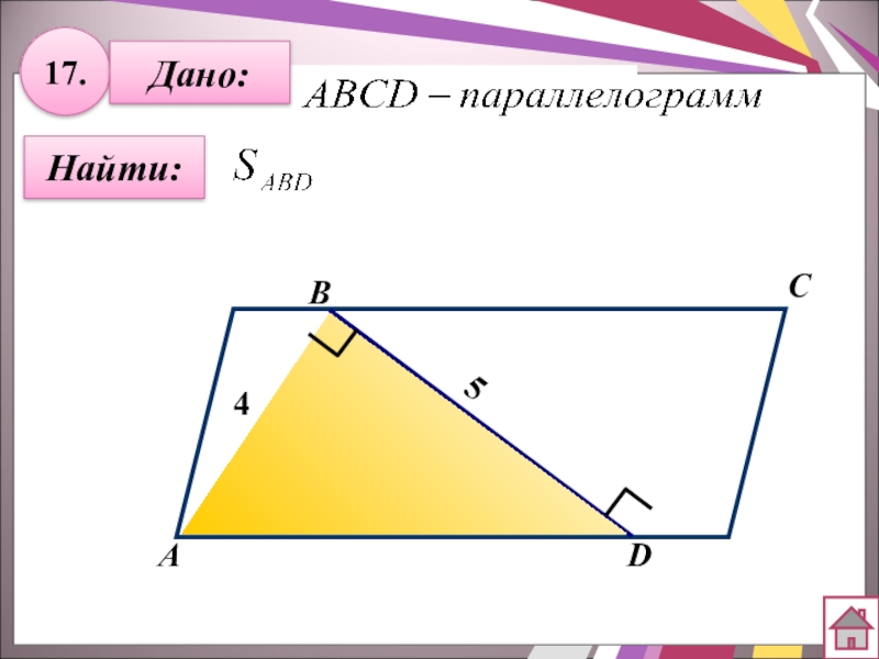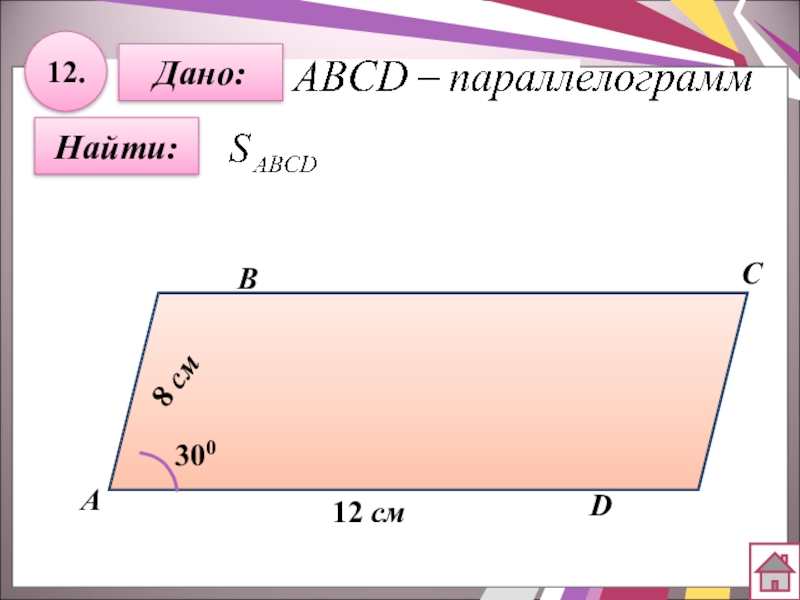 Найдите площадь параллелограмма, если его стороны равны 4 и 5, а угол между ними равен 30°