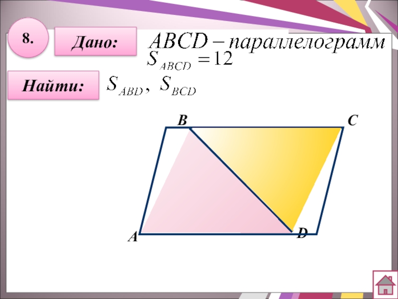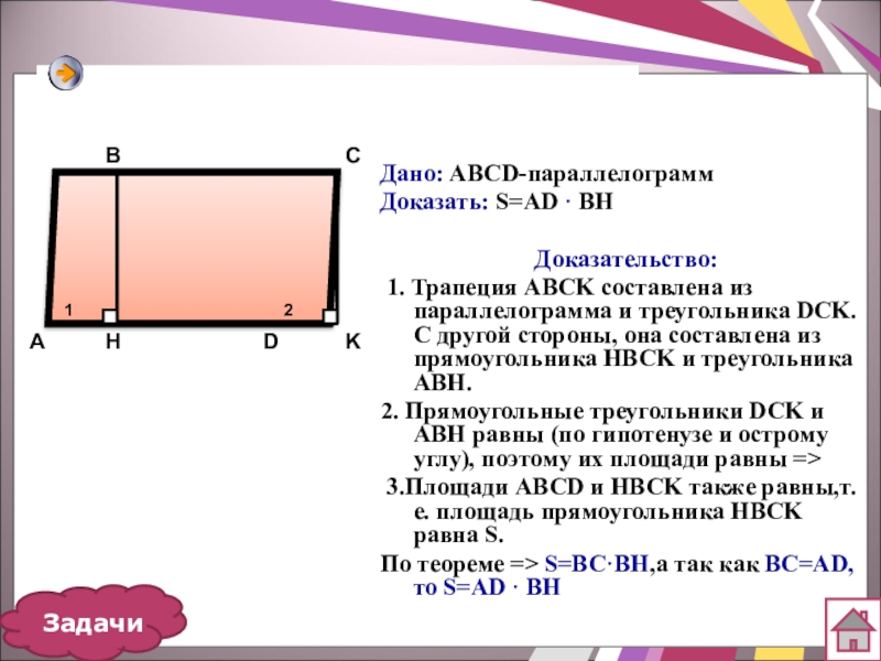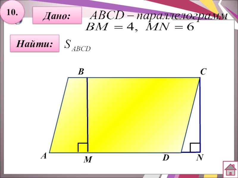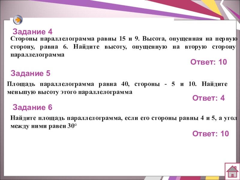 Площадь параллелограмма равна 40, стороны - 5 и 10. Найдите меньшую высоту этого параллелограмма