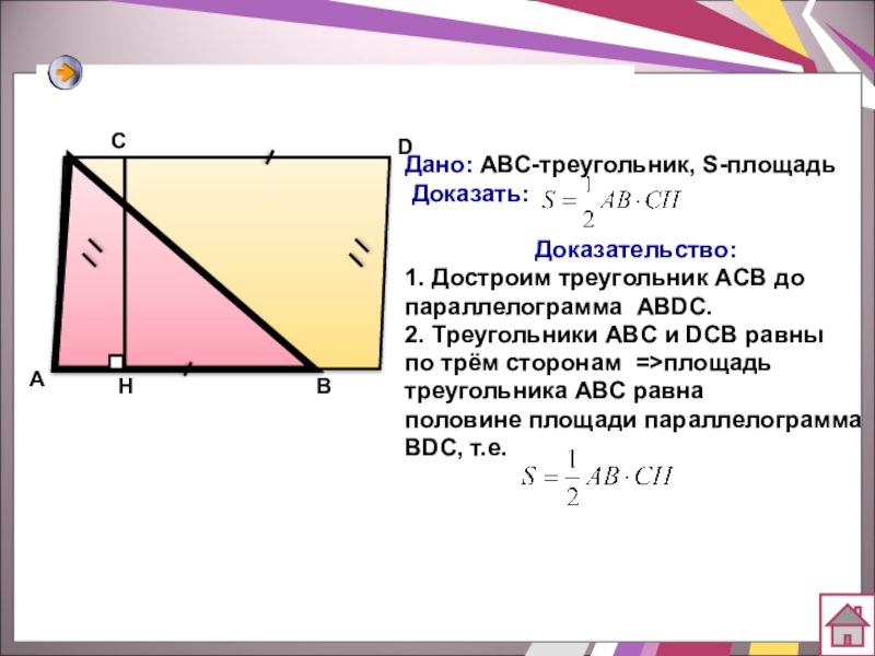 Площадь прямоугольного треугольника равна половине произведения его катетов