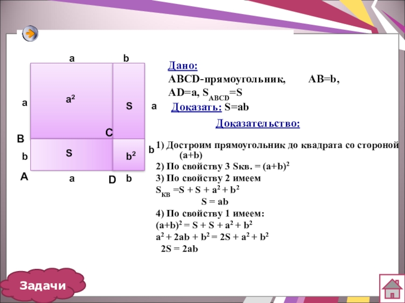 1) Достроим прямоугольник до квадрата со стороной (a+b)