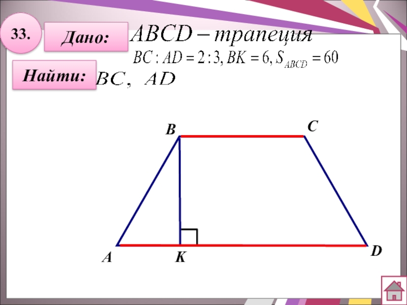 Основания трапеции равны 10 и 35, площадь равна 225. Найдите ее высоту
