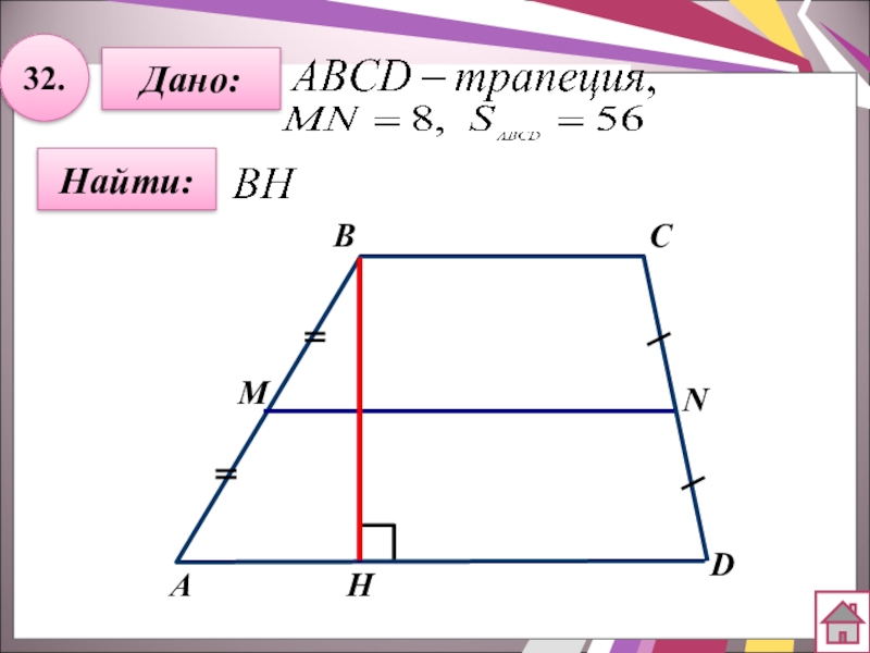 Высота трапеции равна 20, площадь - 400. Найдите среднюю линию трапеции