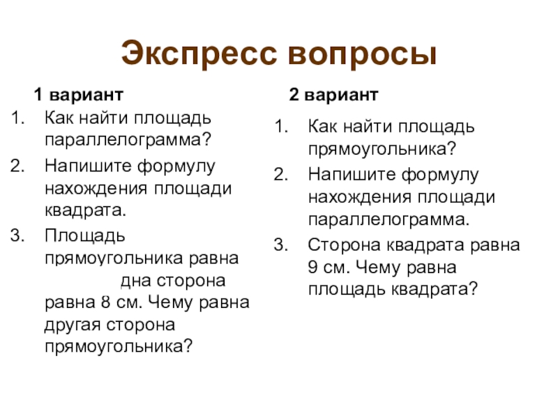 Напишите формулу нахождения площади параллелограмма.
