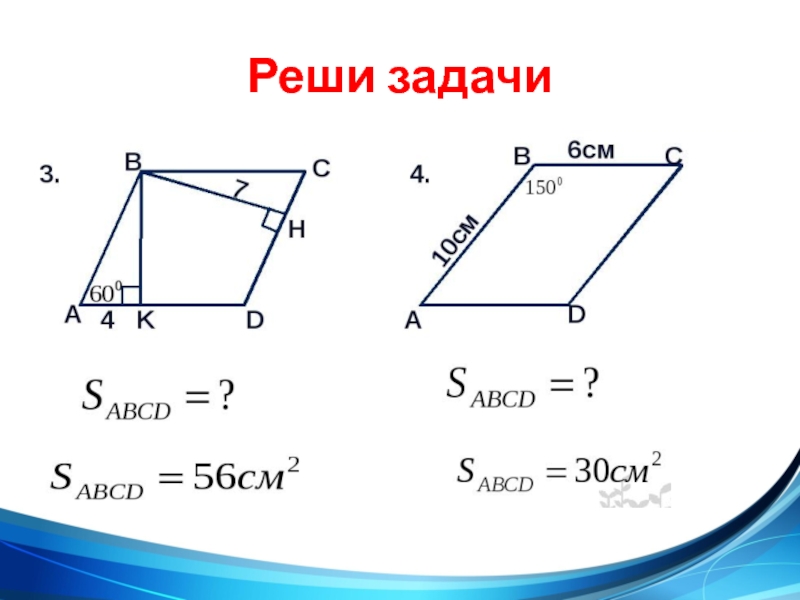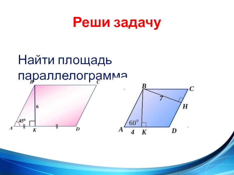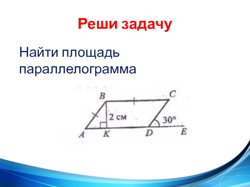 Презентация, доклад по геометри Решение задач по теме Площадь параллелограмма (8 класс)