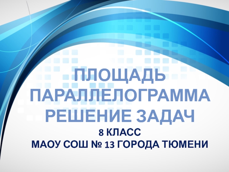 Слайд 1Площадь параллелограмма Решение задач 8 класс МАОУ СОШ № 13 города Тюмени