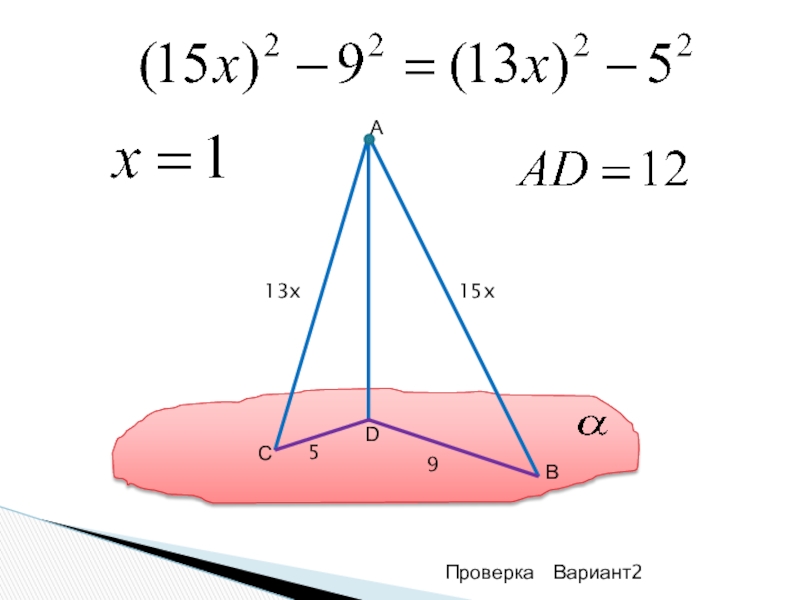 а длины проекций АВ и АС на плоскость α равны 5 см и 9 см.