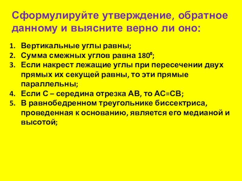 Сформулируйте утверждение, обратное данному и выясните верно ли оно: