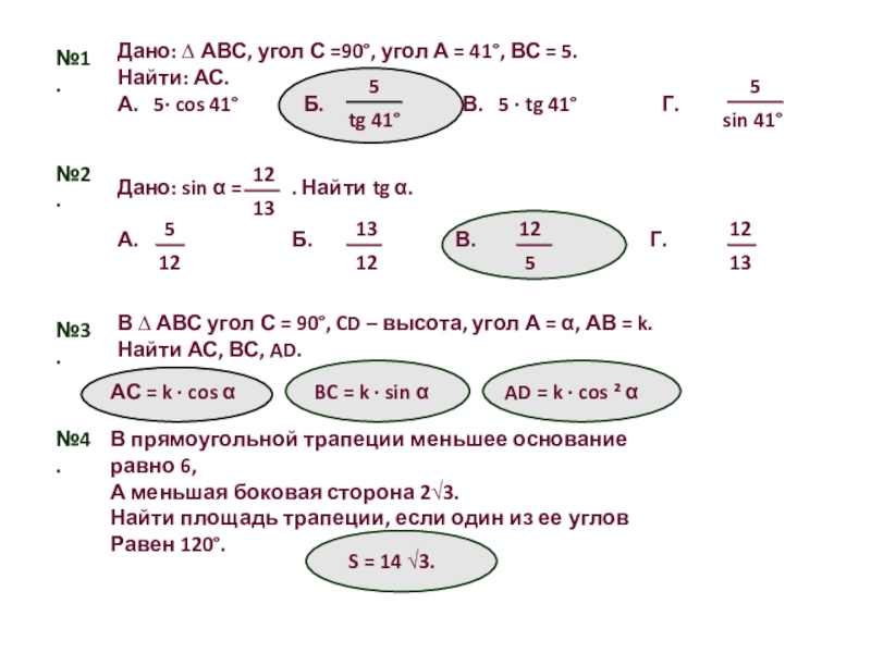 В ∆ АВС угол С = 90°, CD – высота, угол А = α, АВ = k.