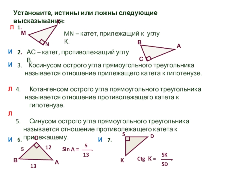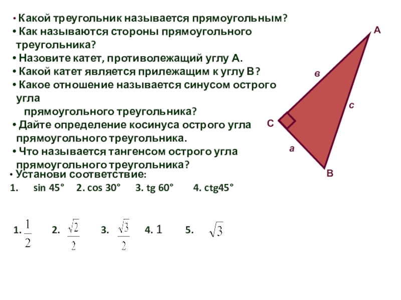sin 45° 2. cos 30° 3. tg 60° 4. ctg45°